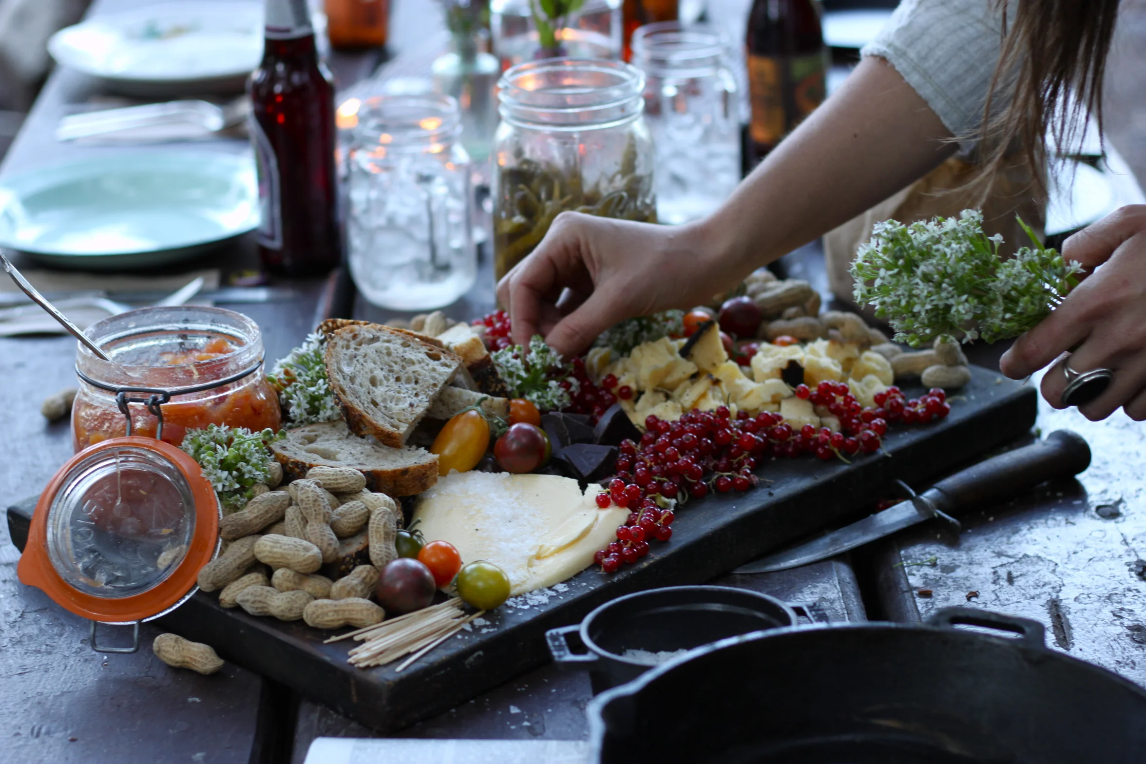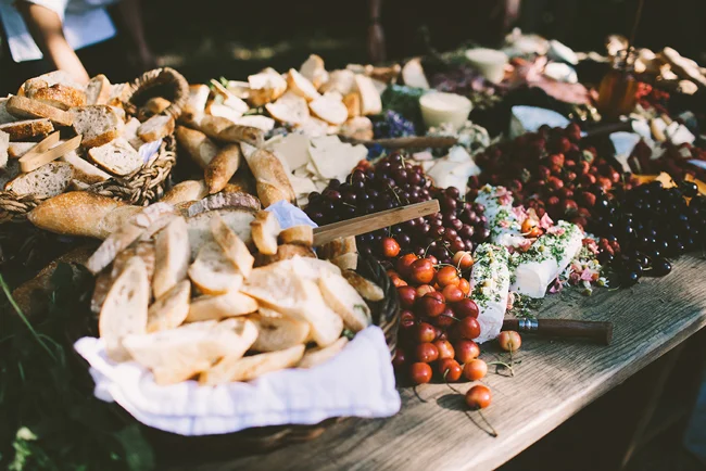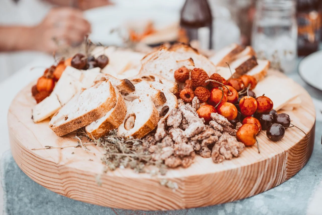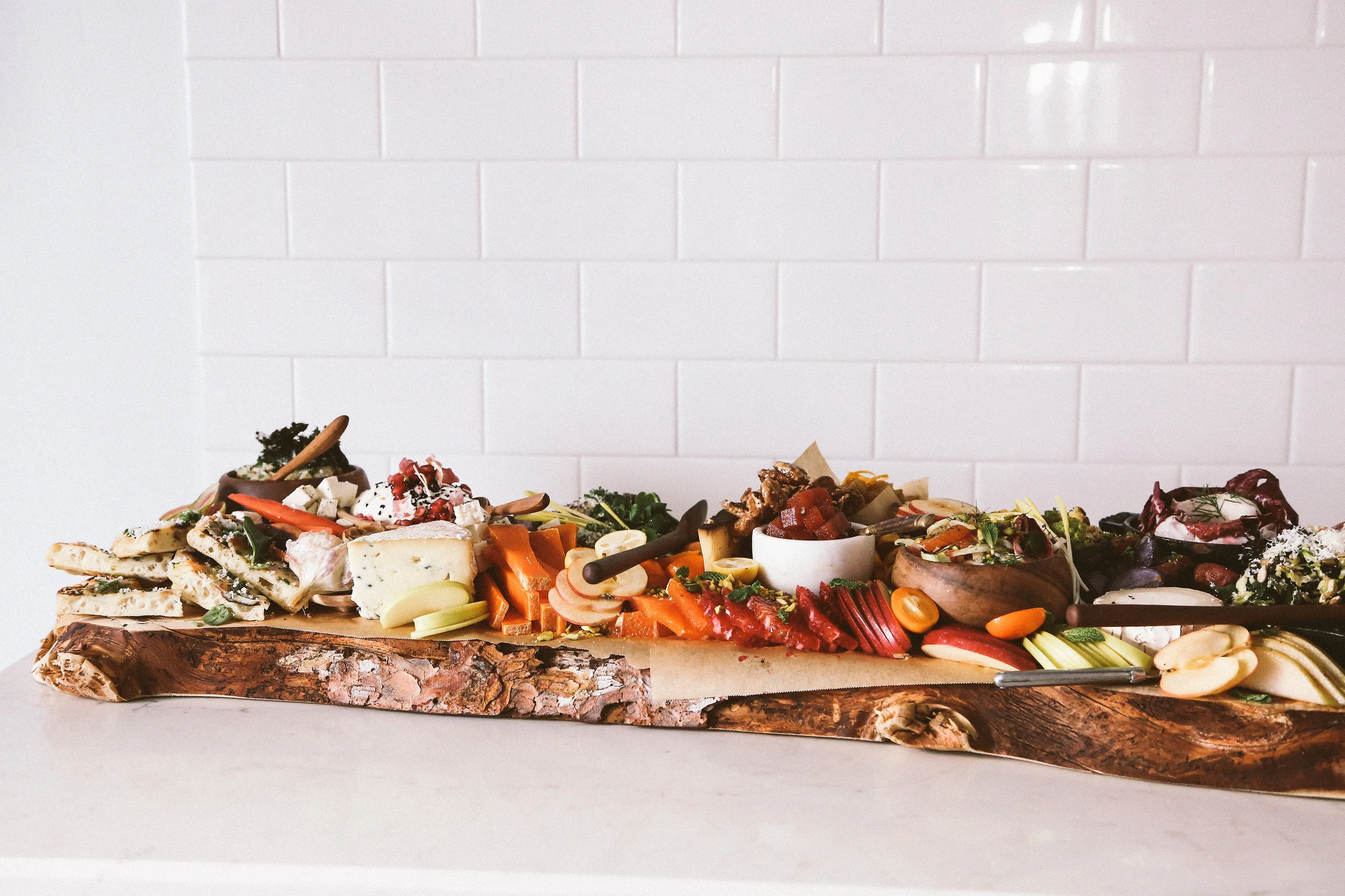 Artisan Cheeses. French Baguette, Fougasse, Walnut Loaf + Country Sourdough. Olive Oil + Sea Salt Flatbread Crackers. Local Salami + Prosciutto. Extra Virgin Olive oil + Aged Balsamic. Irish Butter + Flakey Sea Salt + Raw Utah Honey. Local Cherries, Strawberries, Blackberries & Raspberries. Olives in Olive Oil + Herbs. Pistachios Dark & Milk Chocolate Bark.