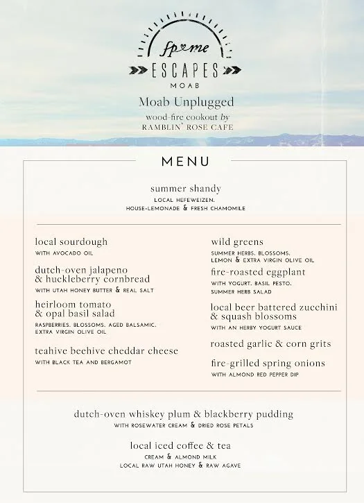A campfire cook-out among the trees and under the stars, with Ramblin' Rose Cafe. A salute to Utah's summer harvest, Sunday September 21st six o' clock in the evening. Three plates with drink pairings. Rock & Ramble.